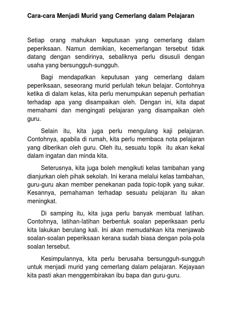 Contoh Karangan Cara Cara Menjadi Murid Cemerlang