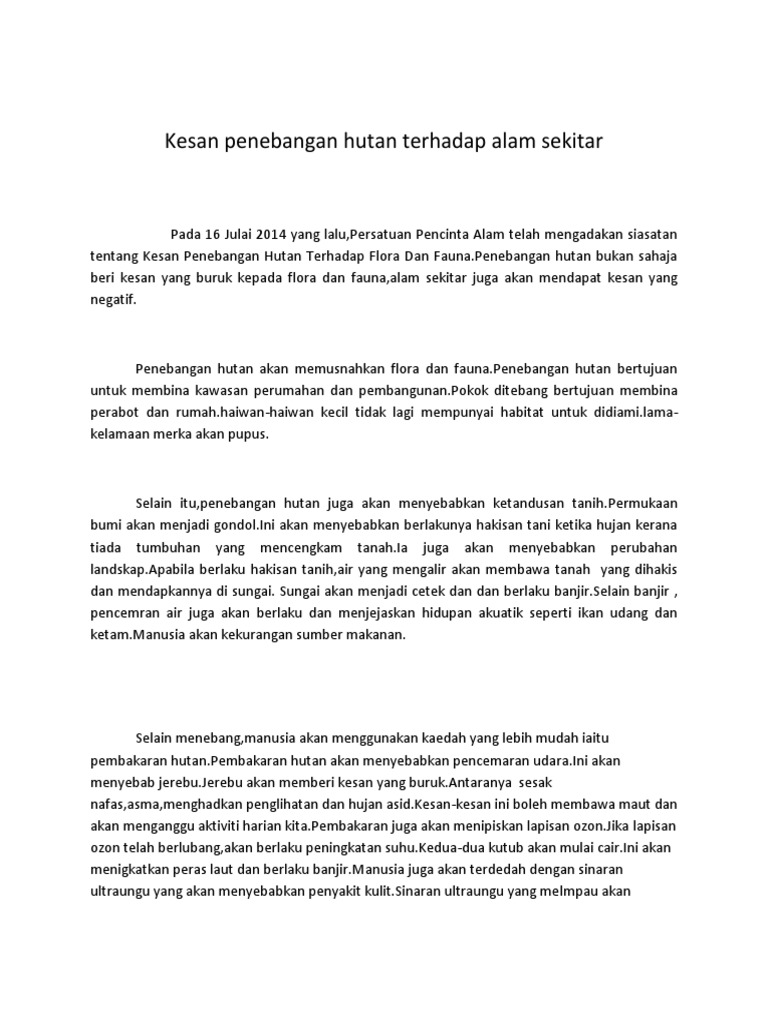 Doc Kesan Kegiatan Penebangan Hutan Terhadap Tumbuh Tumbuhan Semula Jadi Dan Hidupan Liar Lee Kai Rong Academia Edu