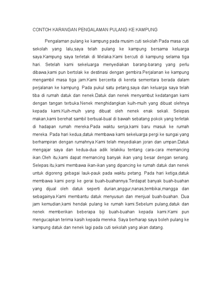 Contoh Karangan Pengalaman Pulang Ke Kampung