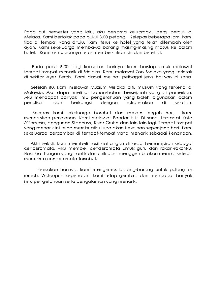 Karangan Pengalaman Bercuti Di Melaka