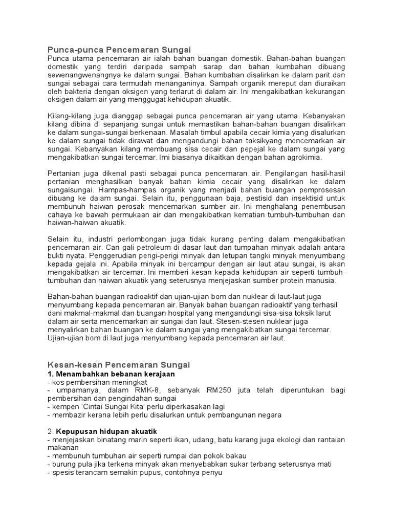 Karangan Fakta Punca Punca Berlakunya Pencemaran Alam Docx