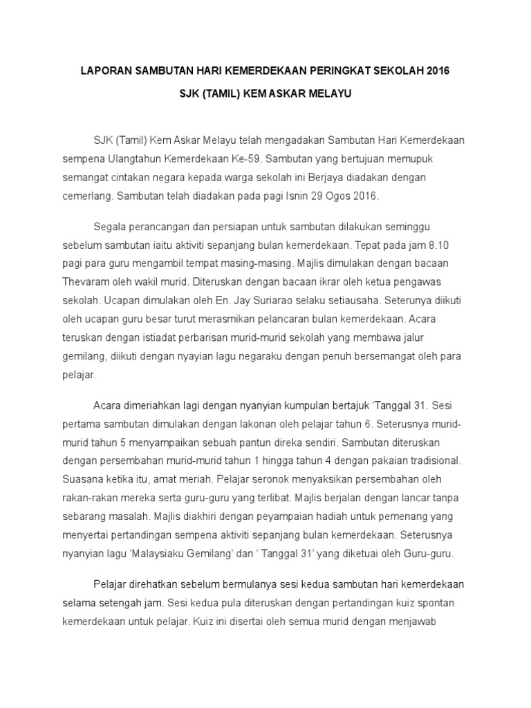 Contoh Karangan Laporan Sambutan Kemerdekaan Peringkat Sekolah