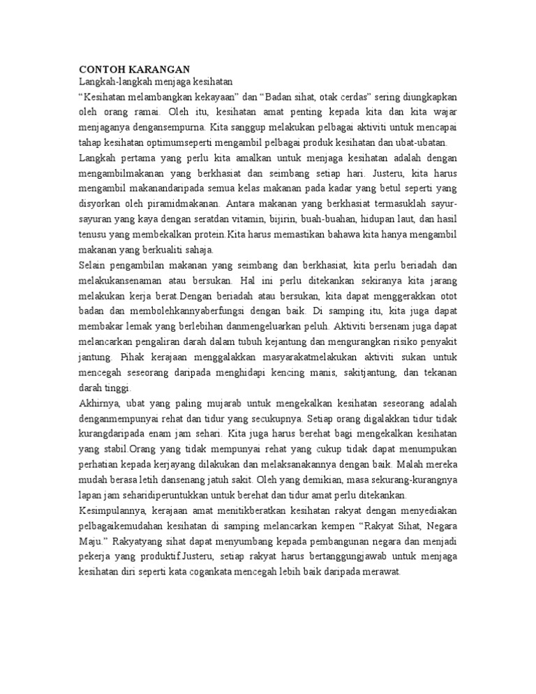 Bahasa Melayu Pt3 Contoh Karangan Gaya Hidup Sihat Pt3
