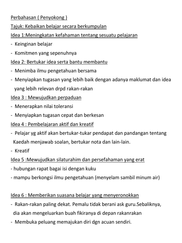 Pmr Bm Ringkasan Kebaikan Belajar Secara Berkumpulan