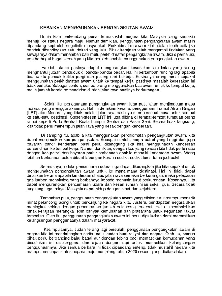 Kebaikan Menggunakan Kenderaan Awam Karangan