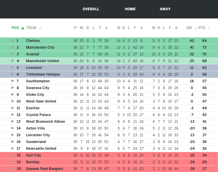 Erstligasaison im englischen fußball. Berikut adalah kedudukan penuh pasukan liga perdana inggeris bagi musim 2015 16. Berikut adalah jadual perlawanan carta kedudukan serta keputusan perlawanan terkini liga perdana inggeris english premier league untuk rujukan para peminat bola sepak.