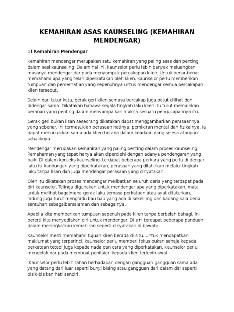 Holdings Kemahiran Mendengar Dalam Kaunseling