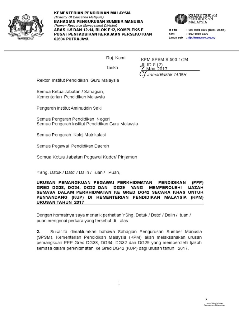 Iklan Pemangkuan Ke Gred Dg42 Kup Urusan Tahun 2017 Pdf 1