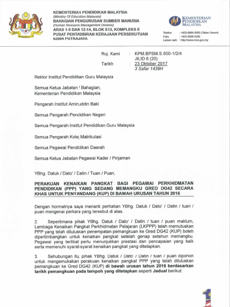 Surat Makluman Kenaikan Pangkat Ke Dg42