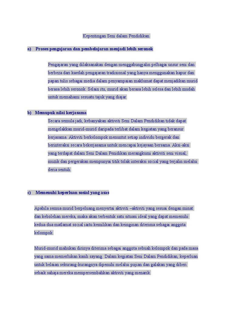 Rumusan Konsep Latar Belakang Dan Kepentingan Seni Dalam Pendidikan