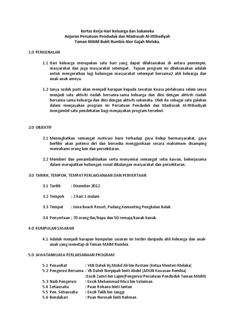 Doc Kertas Kerja Hari Keluarga Dan Sukan Tahunan Jumaadil Talakan Academia Edu