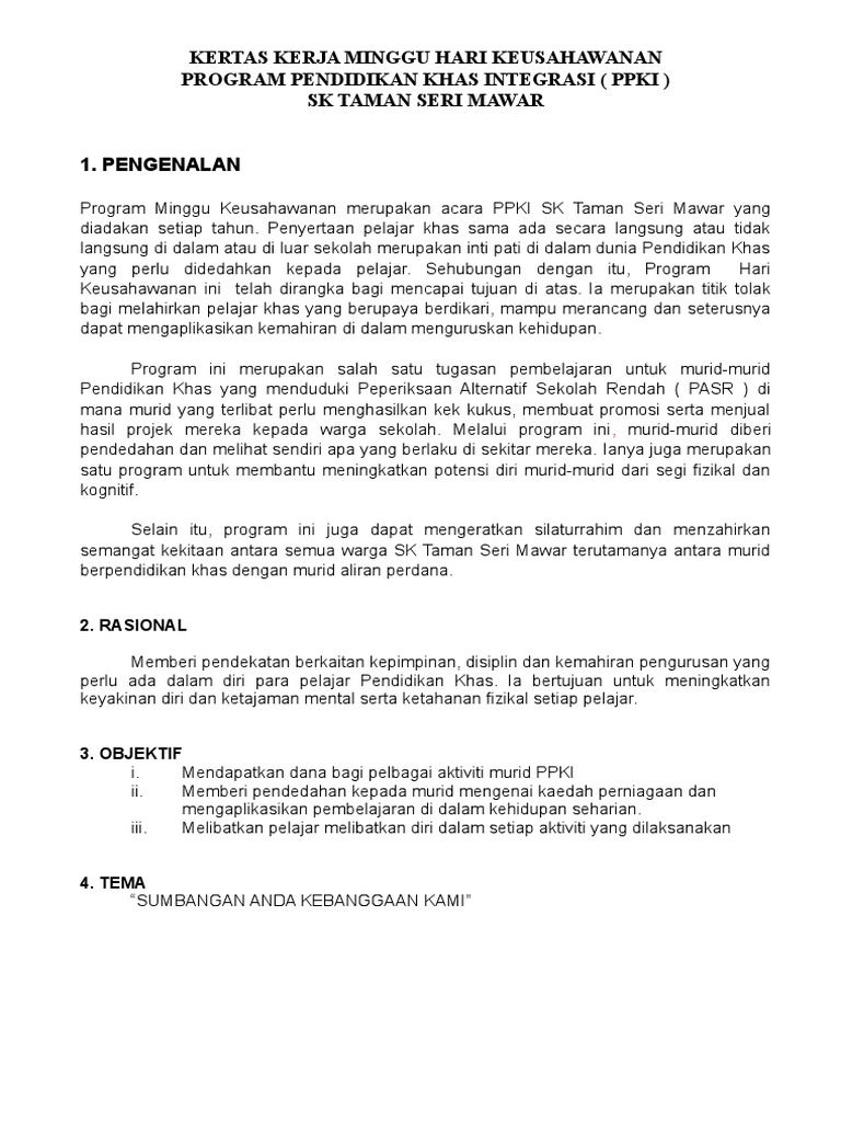 Doc Kertas Kerja Karnival Keusahawanan Sk Bandar 2 Paloh Hinai Tahun 2016 Kelompok Chini Academia Edu