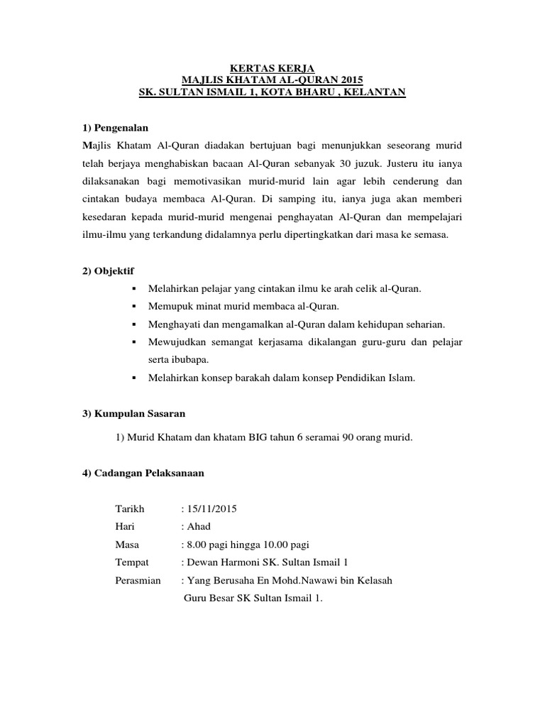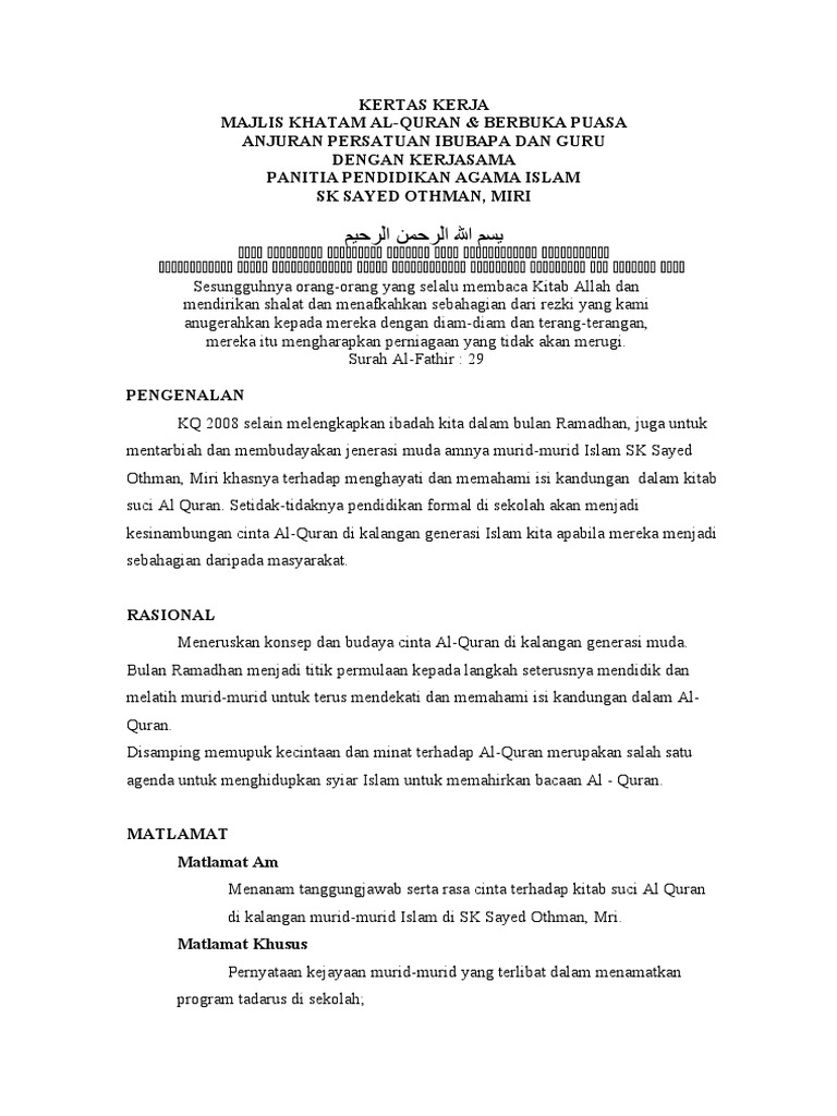 Doc Kertas Kerja Majlis Khatam Al Quran Berbuka Puasa Anjuran Persatuan Ibubapa Dan Guru Dengan Kerjasama Panitia Pendidikan Agama Islam Sk Sayed Othman Miri Aisyah Meor Academia Edu