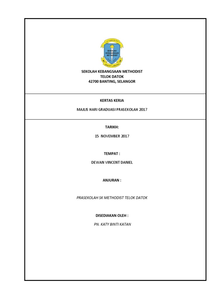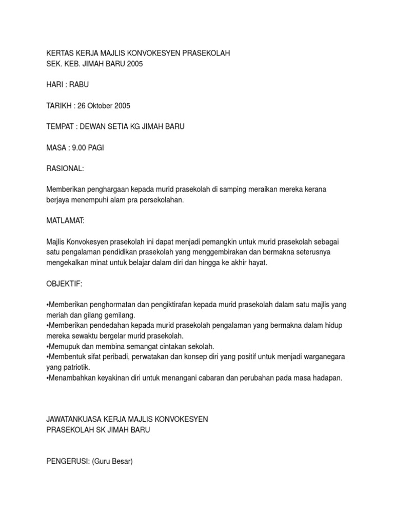 Kertas Kerja Konvokesyen Prasekolah Doc Document