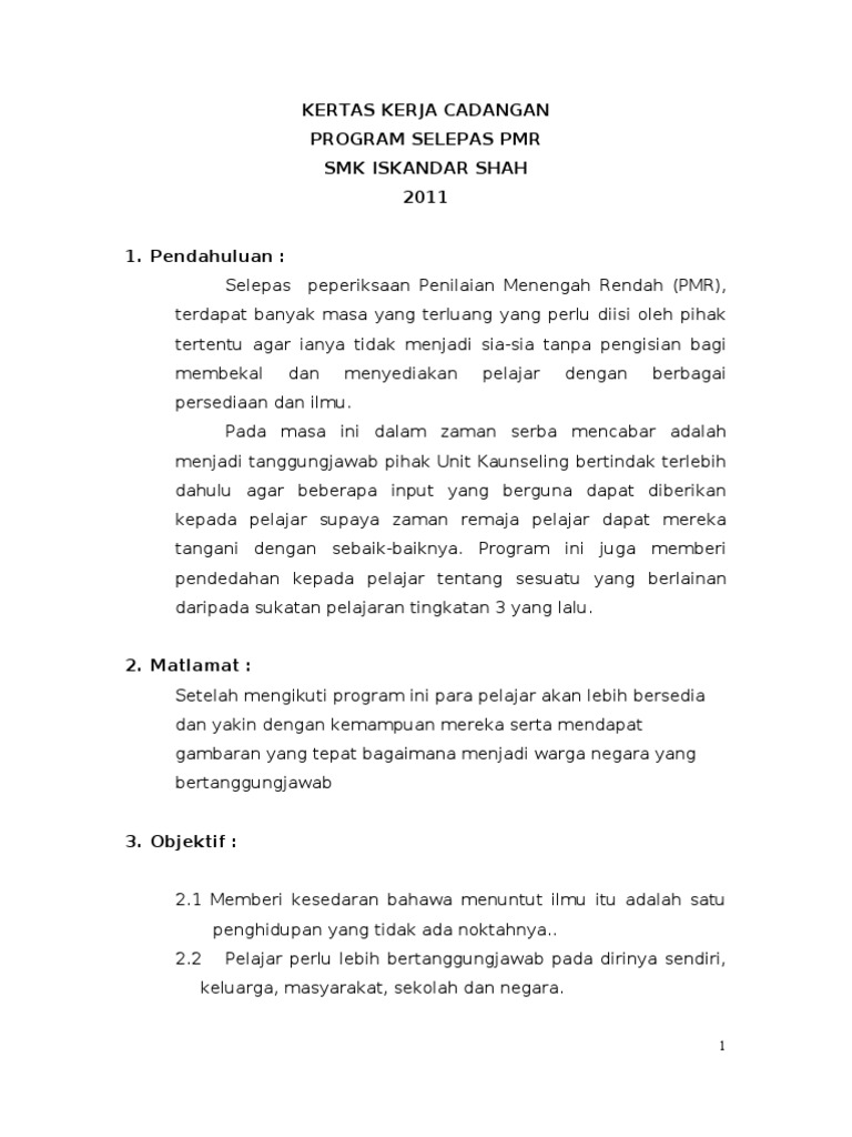 Kertas Cadangan Program Kecemerlangan Spm Dan Pmr