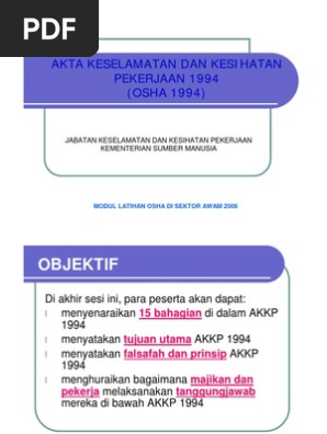 Akta Keselamatan Dan Kesihatan Pekerjaan 1994 Osha Akta1994