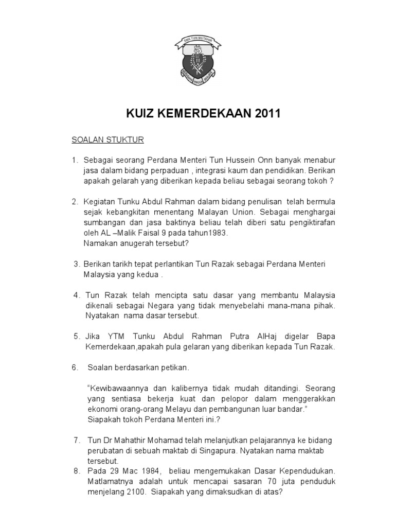Contoh Soalan Kuiz Kemerdekaan Dan Jawapan J Kosong T