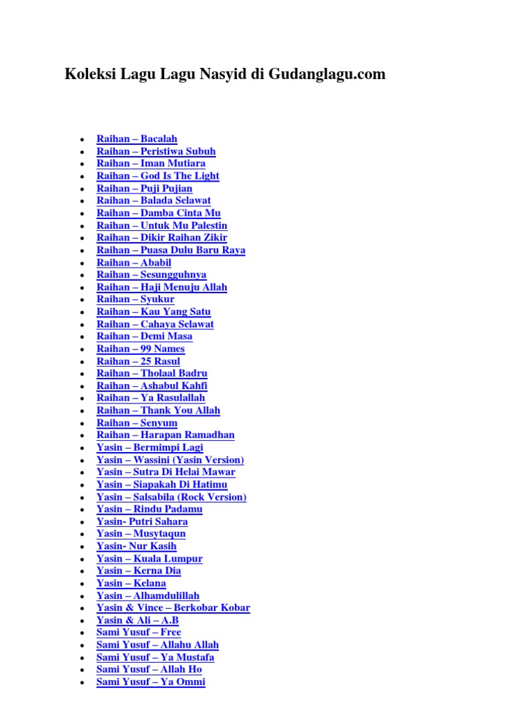 Koleksi Lagu Lagu Nasyid Di Gudanglagu