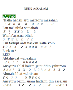 Not Angka Lagu Deen Assalam Sabyan Gambus Partitur Lagu Terbaru