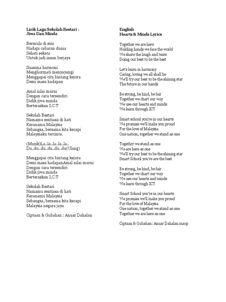 Lagu sekolah lirik lagu keranamu malaysia. Lagu ini adalah lagu paling popular daripada kumpulan may lagu ini pernah berjaya ke peringkat akhir ajl 1989 dan juga pernah menjuarai carta bulanan muzik muzik untuk bulan julai 1989. Lirik lagu keranamu malaysia. Pakar it pakar ekonomi jaguh sukan dan juga jutawan berkereta jenama negara megah menyusur di jalan raya.