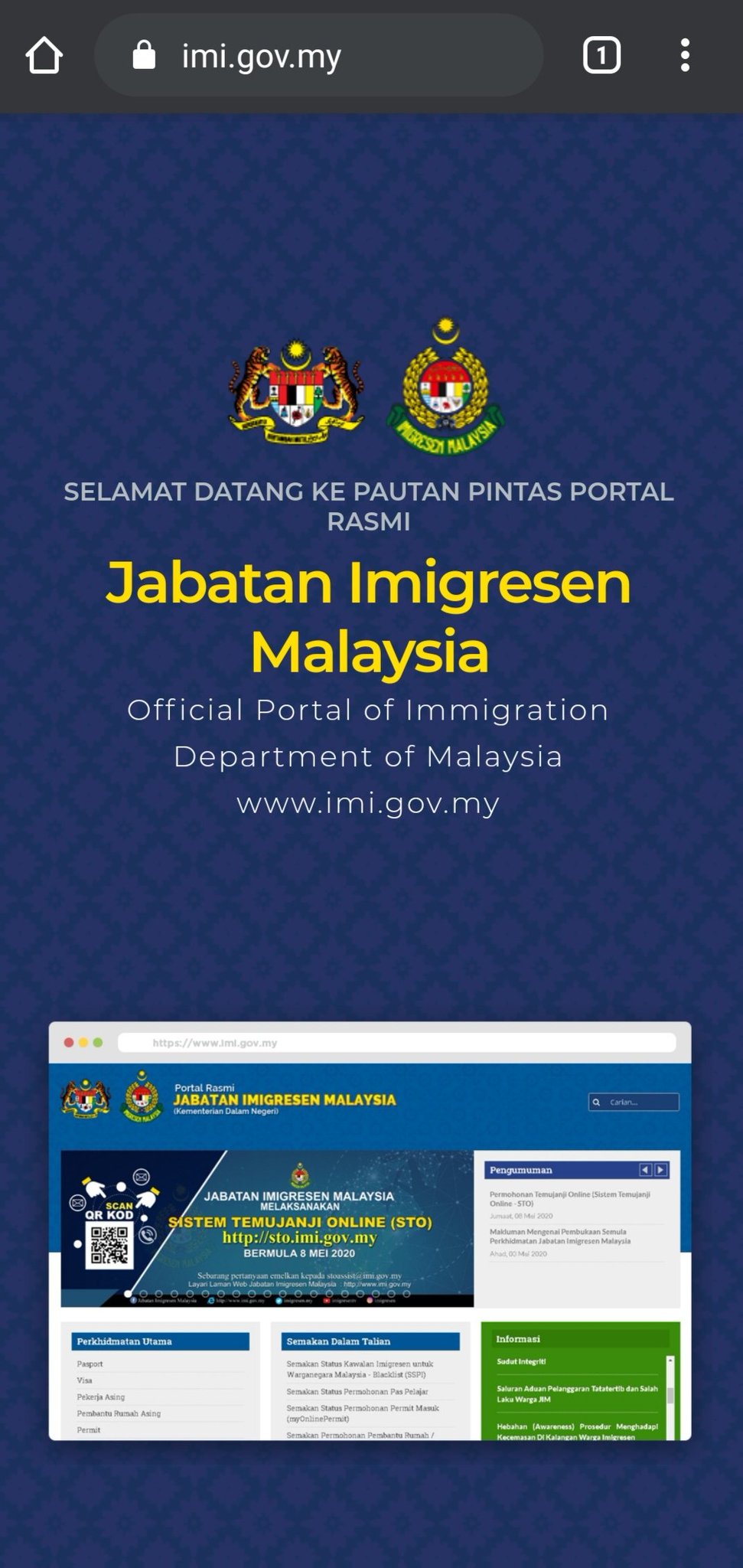 Imigresen Malaysia On Twitter Selamat Datang Ke Pautan Pintas Portal Rasmi Jabatan Imigresen Malaysia Https T Co Opw9dkffte Sistem Temujanji Online Sto Jabatan Imigresen Malaysia Https T Co Cnyzsqav4k Bagi Urusan Di Bahagian Keselamatan Dan