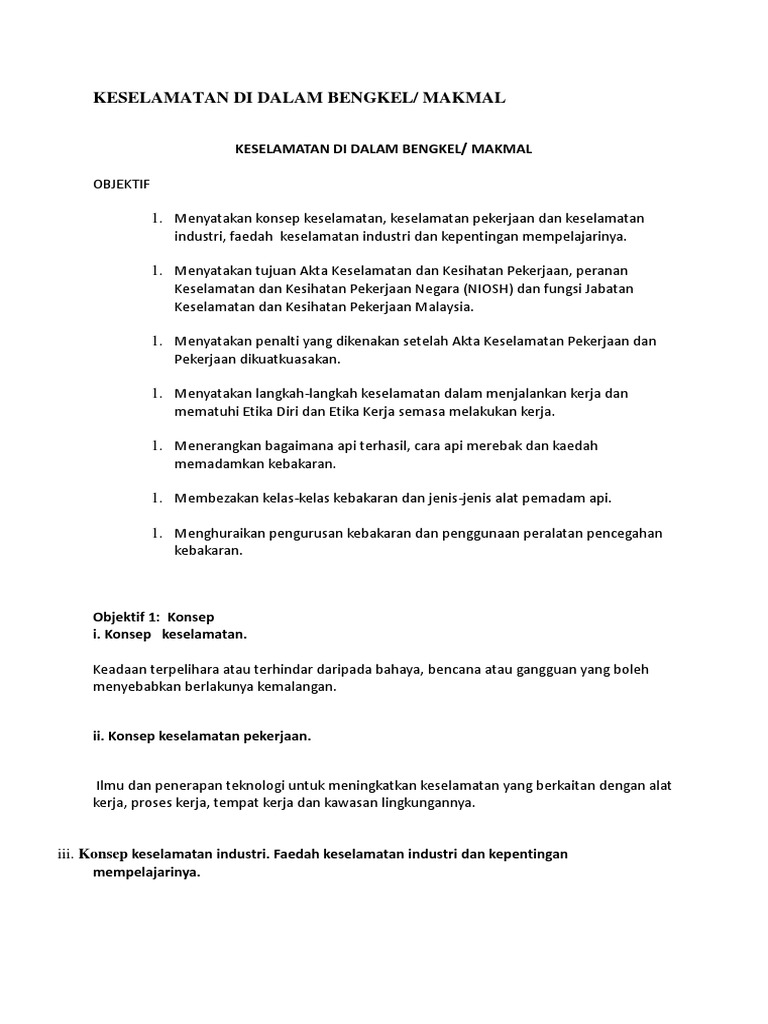 Peraturan Keselamatan Keselamatan Dan Organisasi Bengkel
