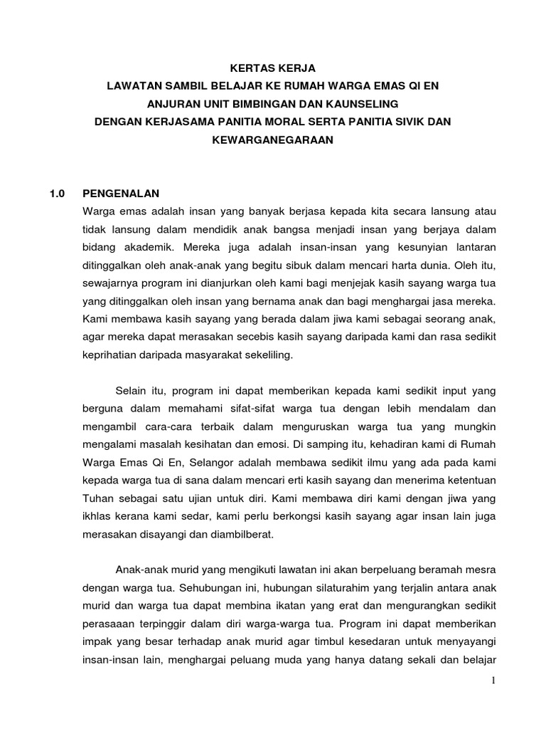 Kertas Kerja Lawatan Laporan Ke Rumah Warga Orang Tua Pdf Document