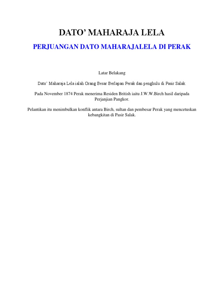 Hnp Power Point Dato Maharaja Lela Pembunuhan Birch Di Pasir Salak