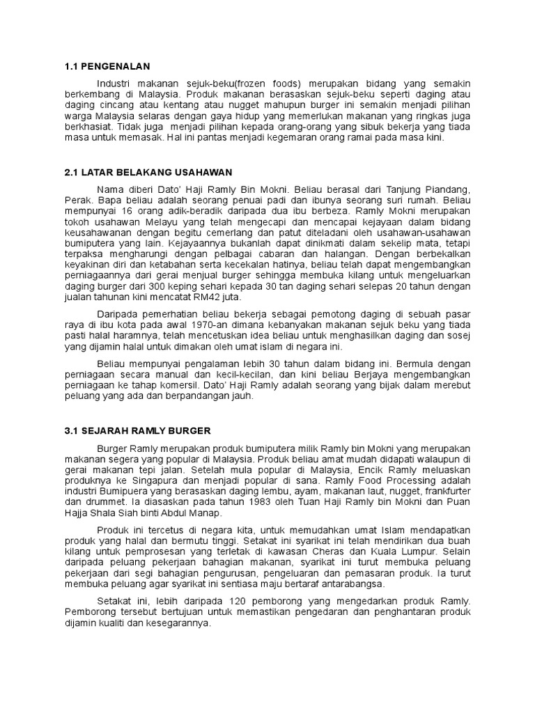 Pb Bisnes Individu Docx 1 0 Latar Belakang Syarikat Ramly Mokni Holding Berhad Perusahaan Burger Ramly Mokni Sdn Bhd Telah Didaftarkan Penubuhannya Course Hero