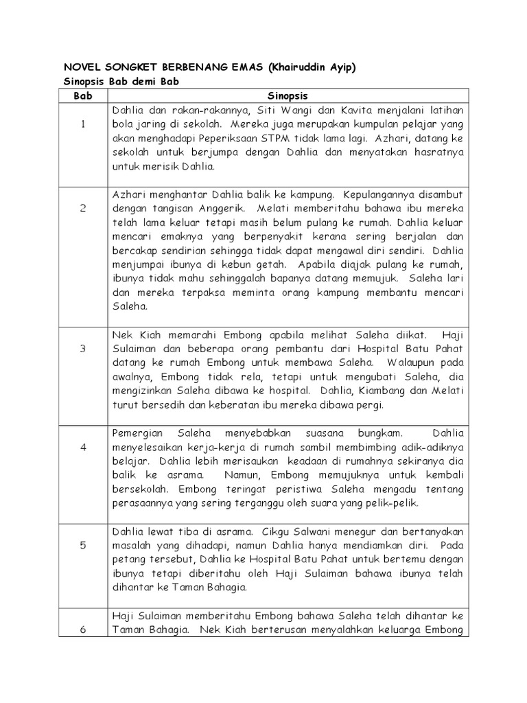Nota Lengkap Novel Songket Berbenang Emas 1 Docx