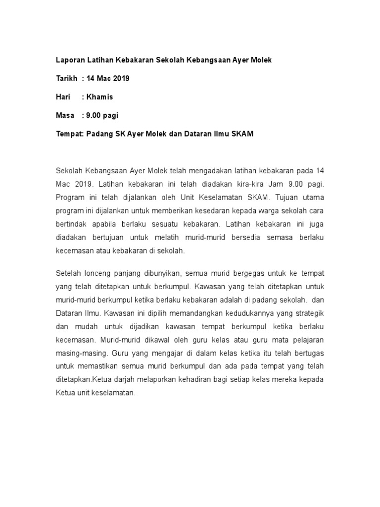 Doc Laporan Latihan Kebakaran Mr Diva Academia Edu