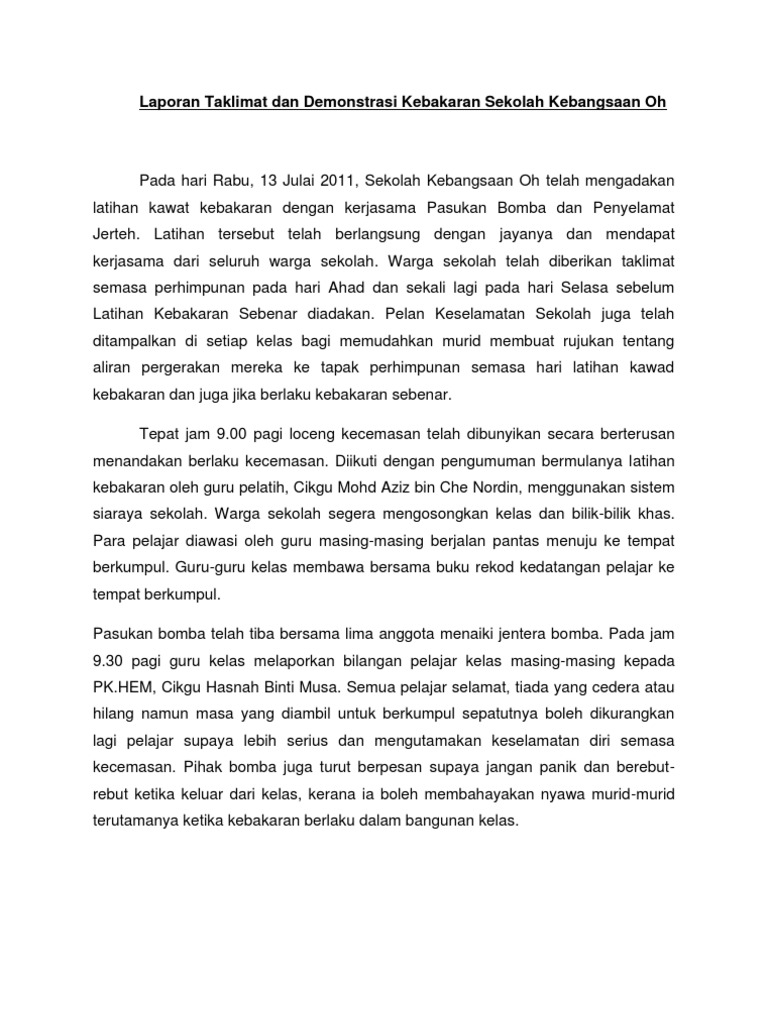 Laporan Taklimat Dan Demonstrasi Kebakaran Sekolah Kebangsaan Oh