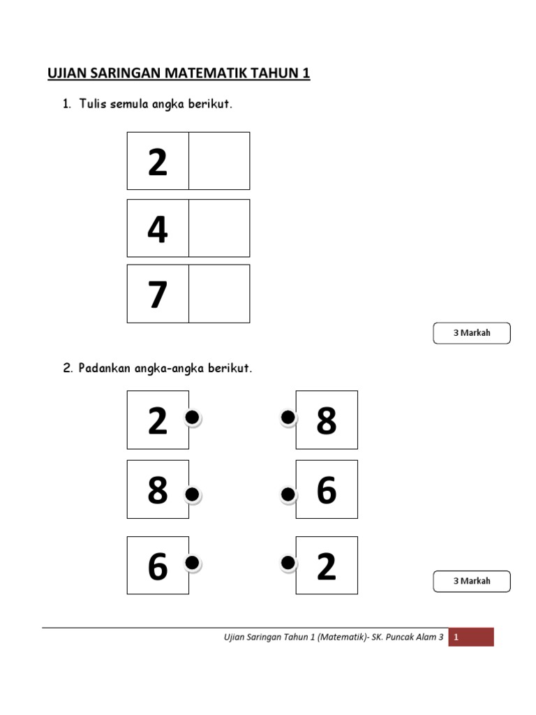 Soalan Saringan Matematik Tahun 1 Persoalan S