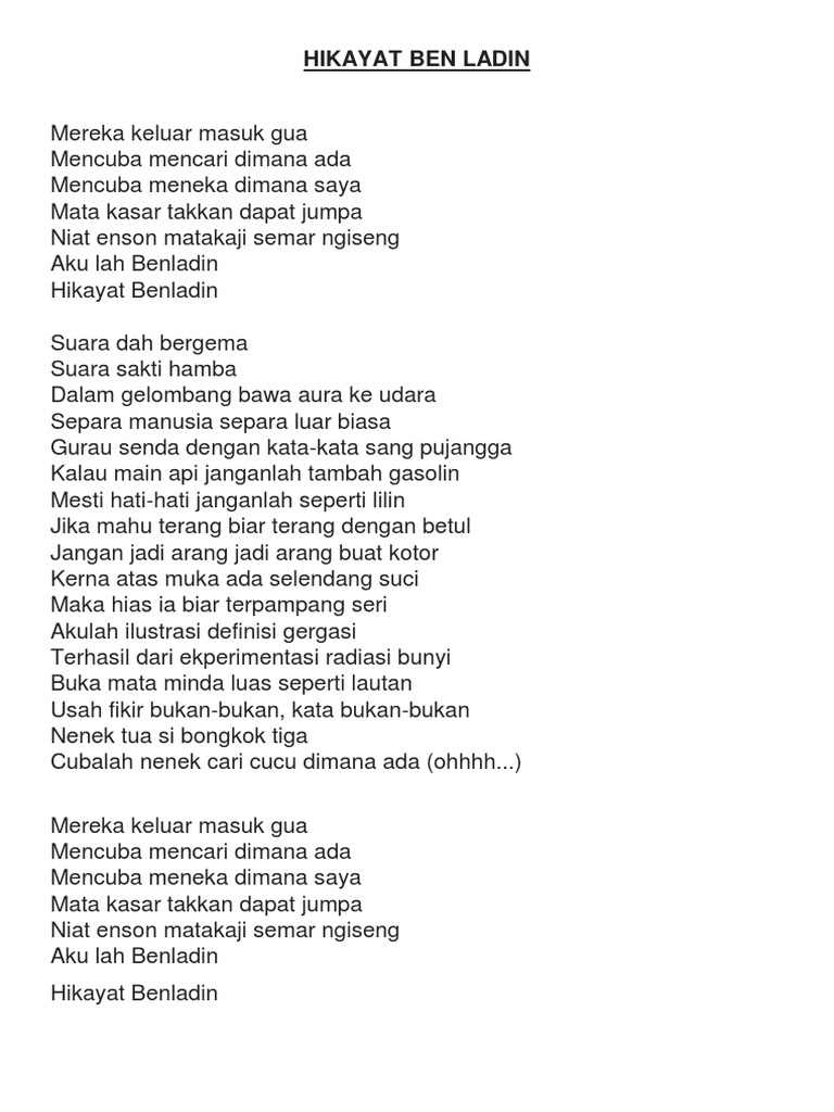 Lirik Video Hikayat Benladin Ben Ladin Poaltube