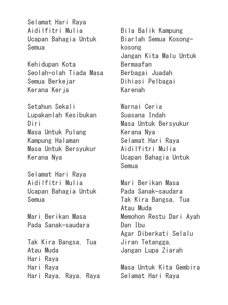 Susan Lyrics Lirik Lagu Raya Tnb 2017 Ceria Di Hari Raya Dugaan Raya Aida