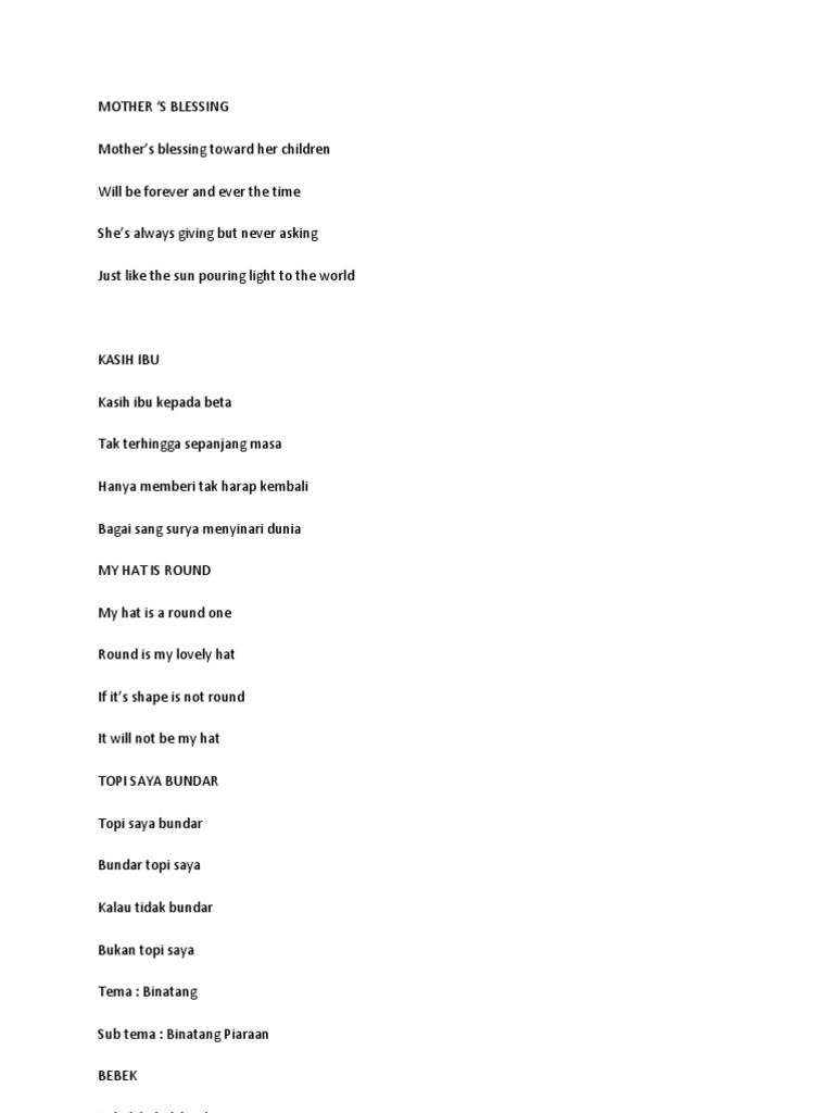 Lirik Lagu Anak Usia Dini