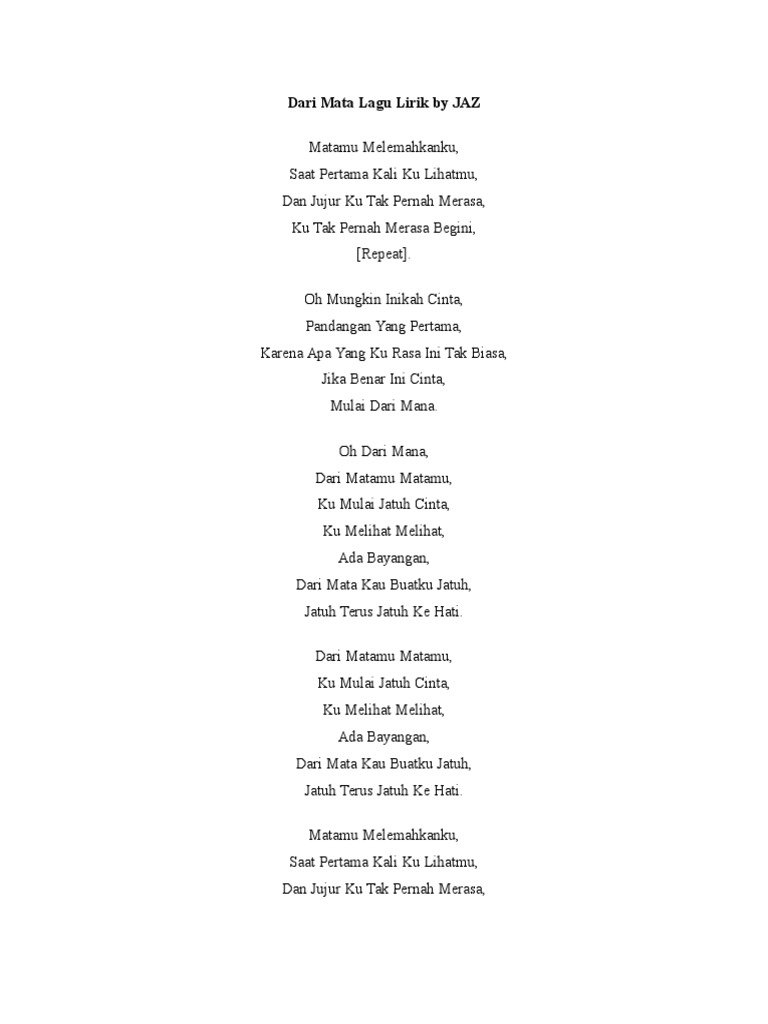 Lirik Lagu Dari Mata Jaz Lirik Lagu Jaz Dari Mata Lirik Indo Youtube