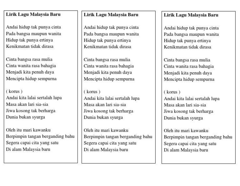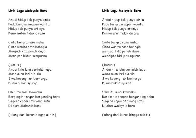 Lirik Lagu Malaysia Baru Docx Document