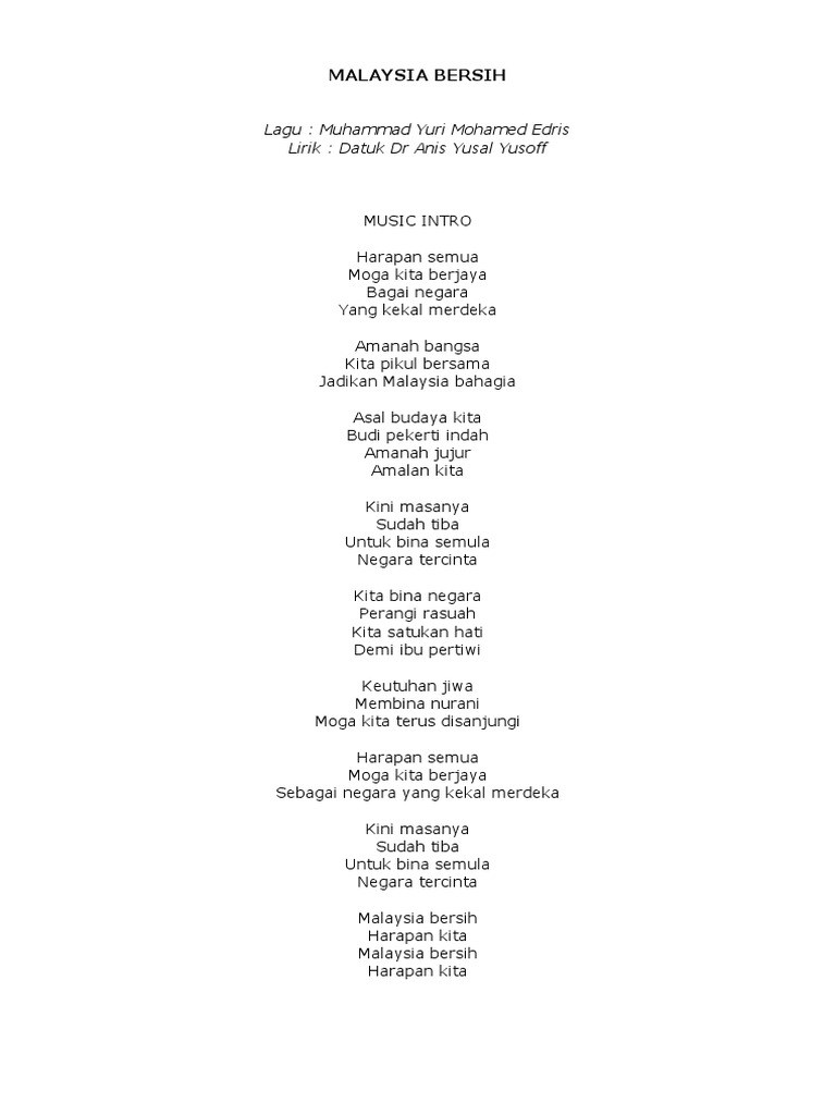 Lirik Malaysia Bersih Docx
