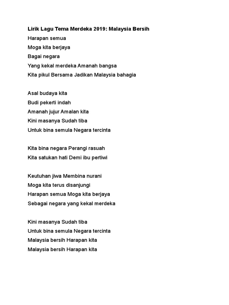 Lirik Lagu Tema Merdeka 2019 Malaysia Bersih