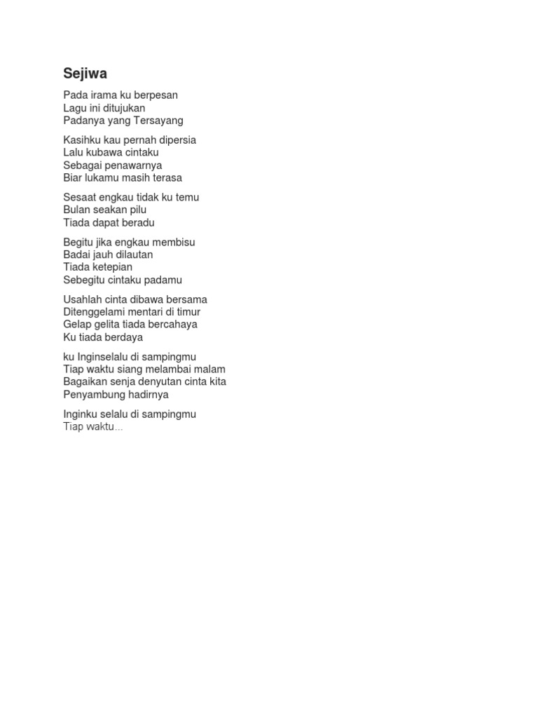 Abdul harris nasution ini lahir pada tanggal 19 februari 1960 dan meninggal 6 oktober 1965. Lirik lagu sejiwa spring. Berikut merupakan lirik penuh dari spring lirik lagu sejiwa spring.
