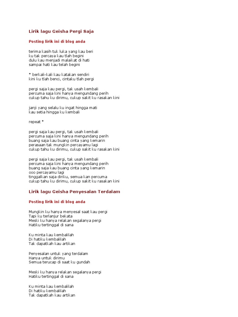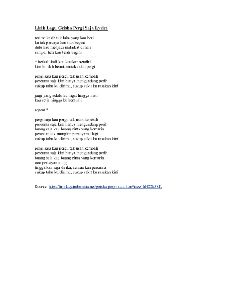Lirik Lagu Geisha Pergi Saja Lyrics