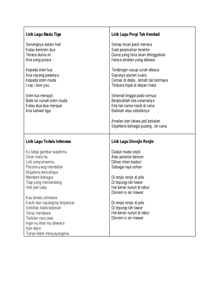 Lirik Lagu Madu Tiga Lirik Lagu Pergi Tak Kembali
