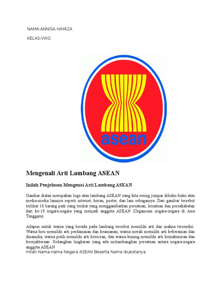 Arti Lambang Asean Dan Nama Negara Negara Yang Bergabung