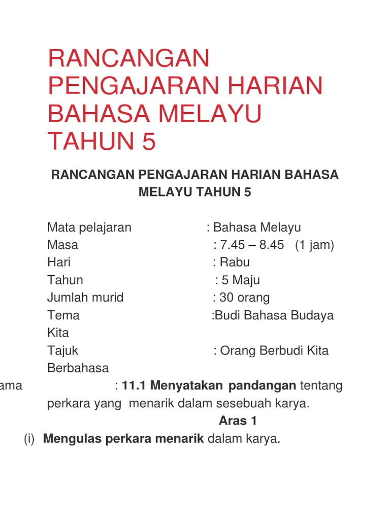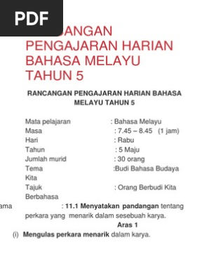 Rancangan Pengajaran Harian Bahasa Melayu Tahun 5